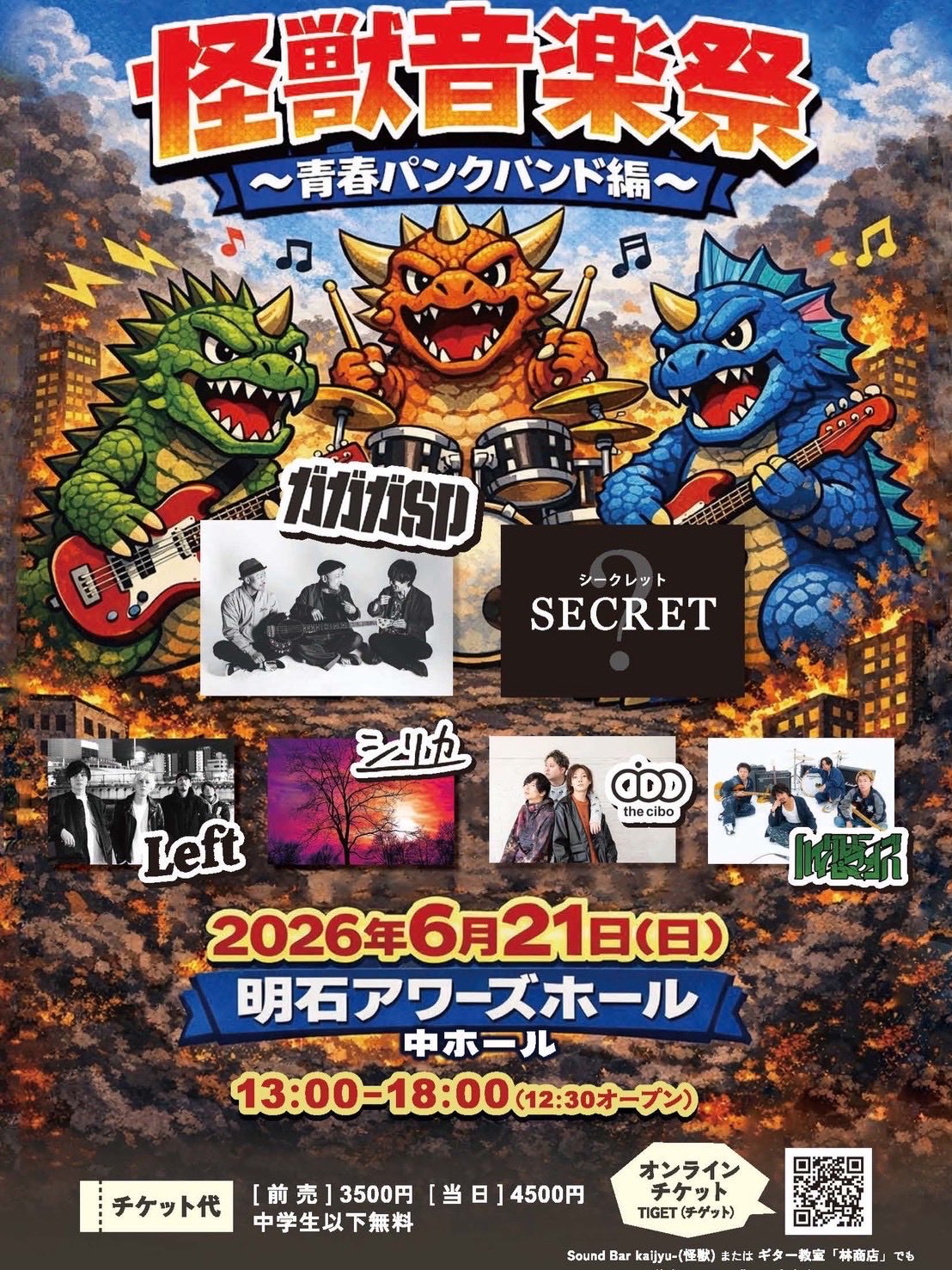 開場:12:30/開演:13:006/21(日)怪獣音楽祭〜青春パンクバンド編〜